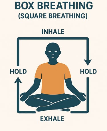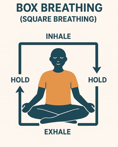 Box breathing is a structured technique that involves equal counts for inhaling, holding, exhaling, and holding again. It’s used by athletes and professionals to maintain calm under pressure.